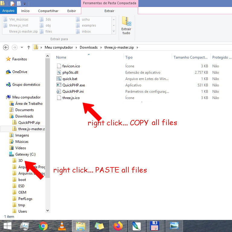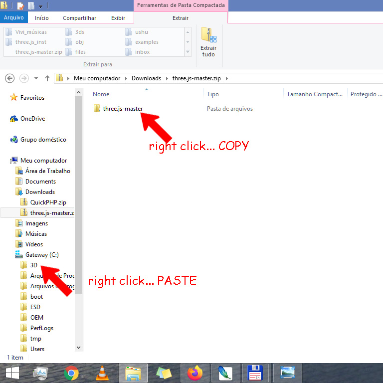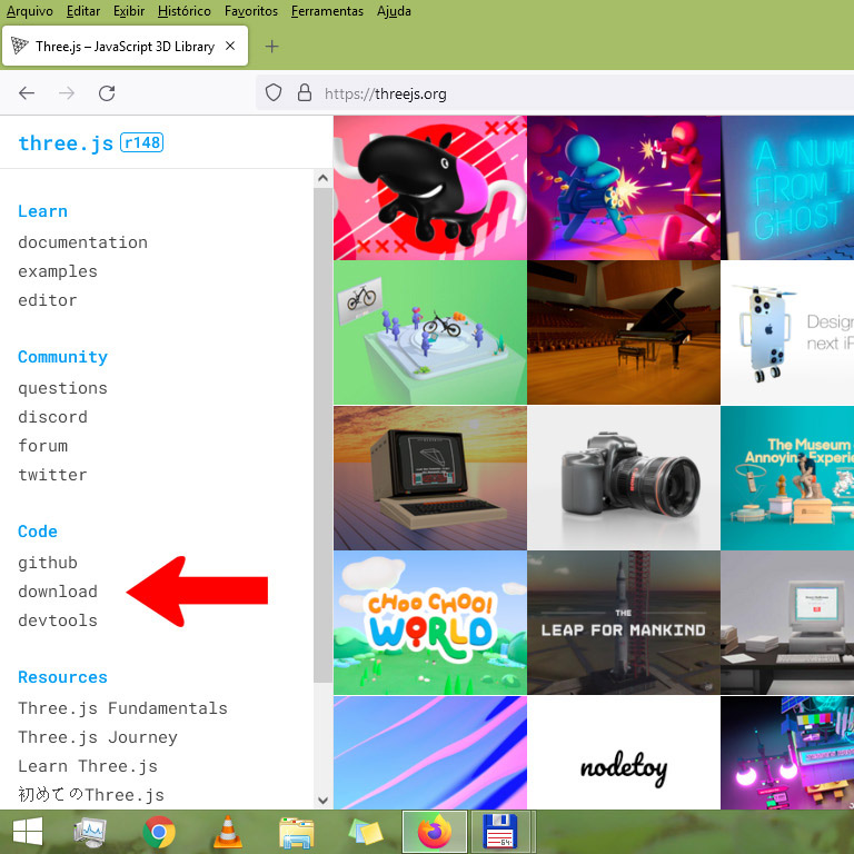 Open https://threejs.org/ and click download to get three.js-master.zip