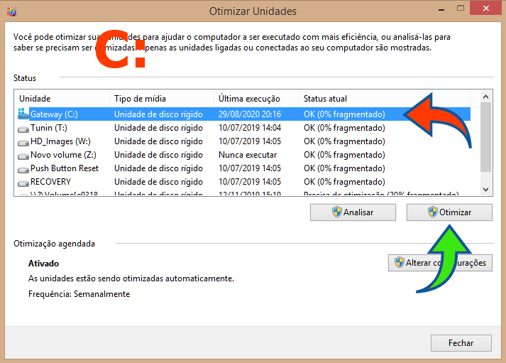 Procurar no Windows "Desfragmentar e otimizar suas unidades"